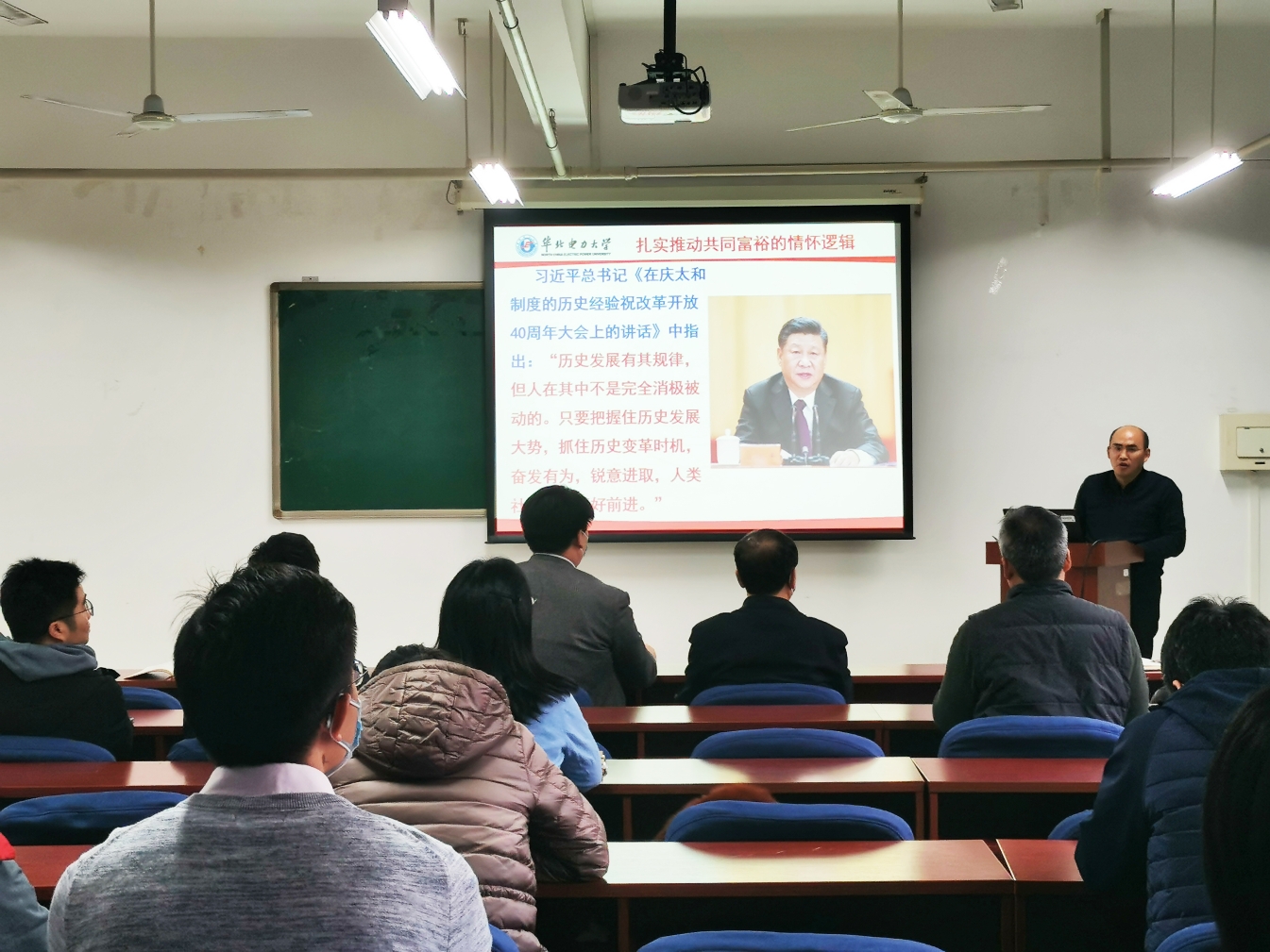 王伟教授作了“以人民为中心,扎实推动共同富裕”的专题报告,从“以人民为中心”发展理念的现实逻辑、历史逻辑、情怀逻辑三个方面,详细地为大家解读了十九届五中全会的精神,王伟教授引经据典,旁征博引,报告语言通俗易懂,使大家轻松深刻地理解了党的新时代的方针政策。