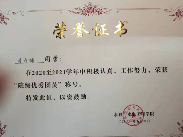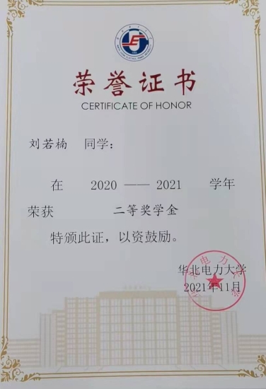 曾获国家励志奖学金;校二等奖学金;色漫网 第十四届大学生节能减排社会实践与科技竞赛三等奖。
