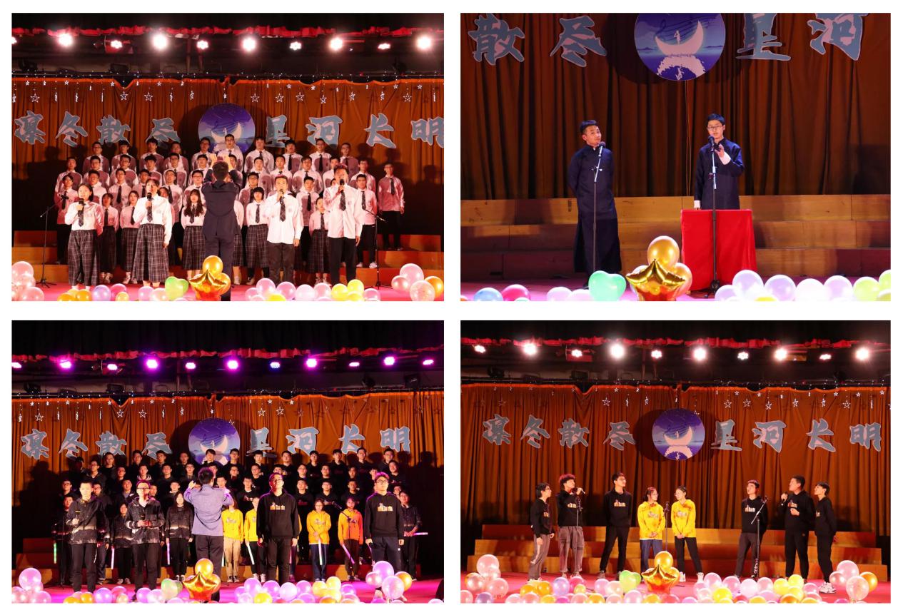 新能源2003班和水利2003班将歌曲与朗诵相结合,用一首《少年中国说》给观众留下了深刻印象,他们的声音抑扬顿挫,铿锵有力;水利类2003班两位同学演唱的歌曲《永不失联的爱》宛转悠扬,撩人心弦;一曲温柔的《知足》在新能源2004班和新能源2005班的演绎下引起了人们心里美好的回忆;歌舞结合的《生僻字》尽显中国传统文化的魅力;新能源2007班和新能源2002班挥舞着红旗动情歌唱《我和我的祖国》,真诚礼赞伟大祖国;歌曲《追光者》让大家看到了自己人生路上的那道光,点燃希望。