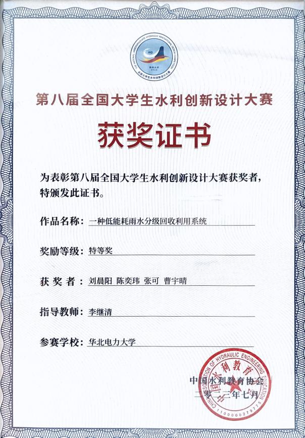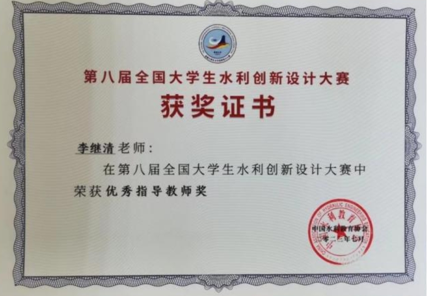 为深入推进新工科建设,全面提升水利学子工程创新综合素质和能力水平,中国水利教育协会举办了第八届全国大学生水利创新设计大赛。经过学院广泛宣传动员,学生自由组队踊跃参加。经过激烈的角逐比拼之后,刘晨阳等四人在李继清老师的指导下,在大赛中斩获特等奖,指导教师李继清老师荣获优秀指导教师奖,我校荣获优秀组织奖。
