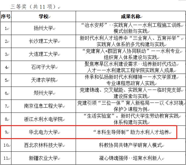 近日,色漫网 的德育工作案例《“本科生导师制”助力水利人才培养》在第三届全国水利德育教育优秀成果遴选中获得三等奖。该评选由中国水利教育协会主办,共有包括清华大学、天津大学在内的51所院校的80项成果申报,经汇总初审、线上评审、专家评议及公示等程序,最终遴选出水利德育教育优秀成果(本科组)一等奖4项,二等奖7项,三等奖11项。