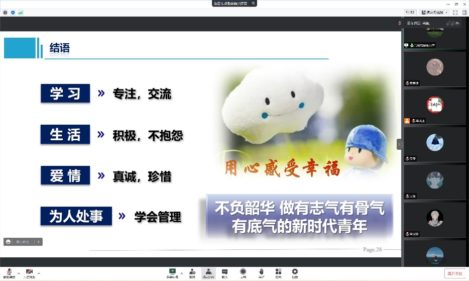 肖峰建议研究生在学习上要专注、交流,在生活上要积极、不抱怨,在爱情上要真诚、珍惜,在为人处事上要学会管理,希望同学们不负韶华,做有志气、有骨气、有底气的新时代青年。