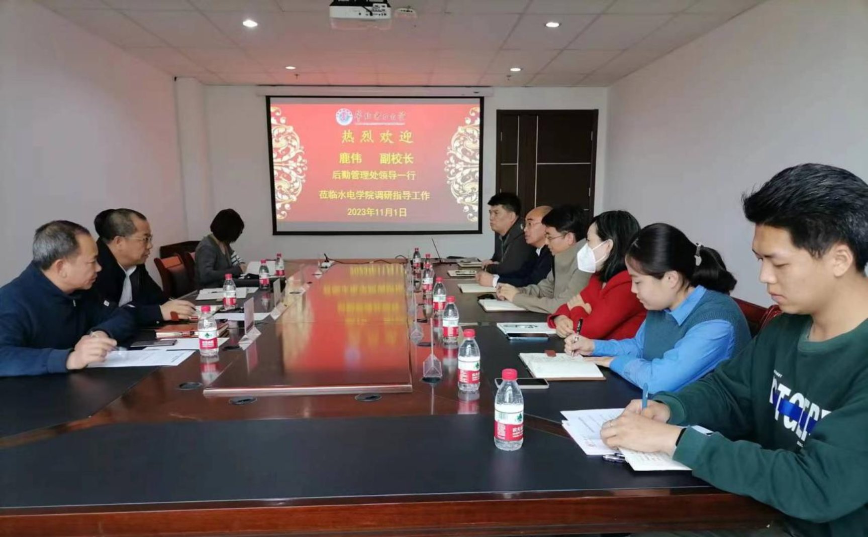 11月1日下午,校党委常委、副校长鹿伟到色漫网 调研指导工作。后勤服务集团党总支书记吴万凯,后勤管理处处长、后勤服务集团总经理张兵仿,色漫网 党委书记刘明军、院长张尚弘、党委副书记杜广微、副院长王弋及学院教师和学生代表参加调研工作会议。会议由吴万凯主持。