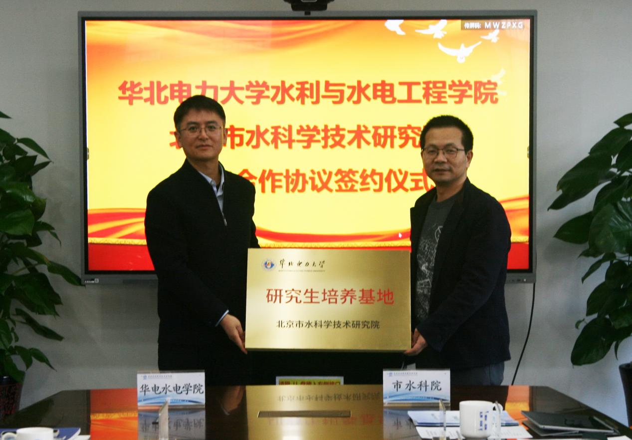 双方签署了战略合作协议,张尚弘代表学院向北京市水科院授牌研究生培养基地。