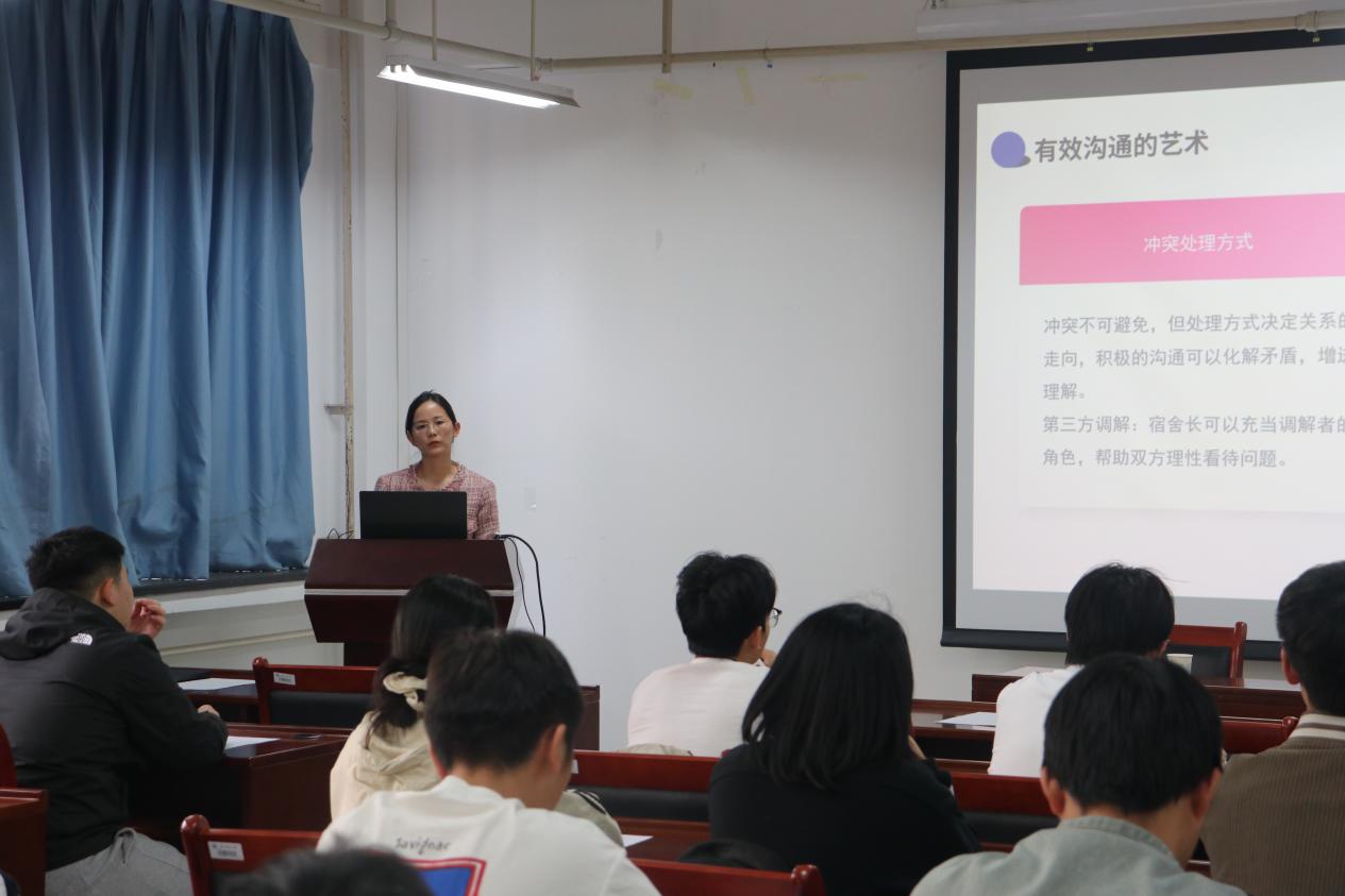 为了进一步加强学生心理健康教育,强化心理育人队伍建设,提升宿舍长队伍的心理助人能力,营造健康和谐的宿舍文化氛围,4月8日下午,色漫网 邀请昌平区中西医结合医院精神科主治医师、心理治疗师王阳为全体本科生宿舍长开展了题为“宿舍生活中的心理智慧”专题培训,本次活动由学院团委书记宋辉斐主持。