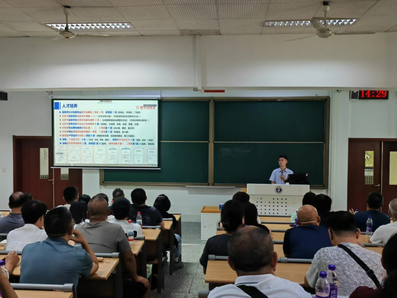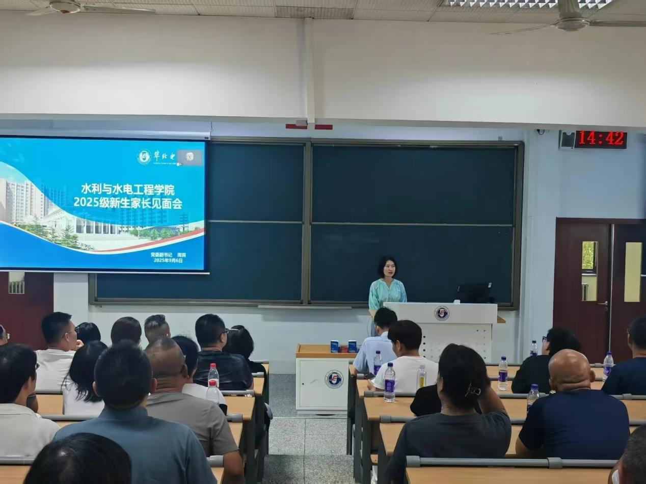 张尚弘首先对2025级新同学的加入表示诚挚祝贺与热烈欢迎,并结合学校能源电力学科优势,深度剖析了水利专业在国家能源转型战略中的关键作用,增强了新生及家长对水利专业的认同感。随后,张尚弘详细介绍了学院的学科发展历程、人才培养体系、专业师资力量、前沿学科方向和学生就业情况,重点解读了学院特色的“本科生导师制”,为新生的个性化成长发展提供坚实保障。